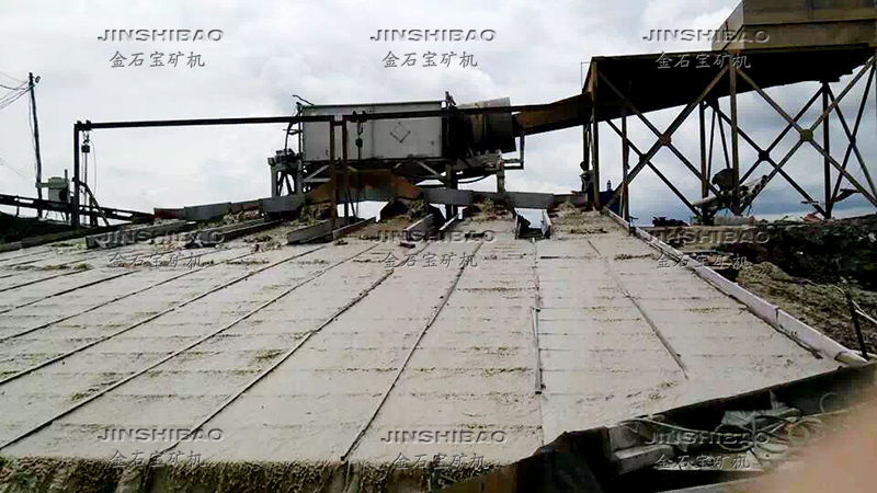 3、原先的固定式溜槽是用淘金氈提金,由于溜槽板結(jié)、淤槽等現(xiàn)象,淘金氈提金的凈選率只有30%左右這些缺點,鼓動溜槽有針對性的進行了克服。